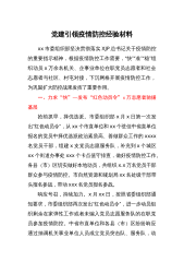 充分发挥“四个作用”坚决扛起打赢疫情防控阻击战重大政治责任为贯彻落实习近平总书记关于疫情防控工作的重要指示精神,坚决打赢疫情防控阻击战,阜阳市充分发挥全市各级党组织和广大党员干部“四个作用”,不忘初心、牢记使命,挺身而出、英勇奋斗,坚决扛起打赢疫情防控阻击战重大政治责任。一、充分发挥党委(党组)领导作用全市各级党委(党组)认真学习贯彻习近平总书记重要指示精神,切实把思想和行动统一到习近平总书记重要指示精神上来,把打赢疫情防控阻击战作为当前重大政治任务和最重要的工作,坚定不移把党中央各项决策部署落到实处。成立由党委、政府主要负责同志任组长的疫情防控工作领导小组,统一指挥协调疫情防控工作。充分发挥...