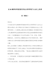 在XX镇第四季度意识形态分析研判扩大会议上的讲话(精品)同志们:今天我们召开全镇第四季度意识形态分析研判扩大会议,主要任务是深入学习贯彻习近平新时代中国特色社会主义思想和党的二十大精神,全面总结分析我镇前三季度意识形态工作,精准研判当前面临的形势与风险,安排部署第四季度及今后一个时期的重点工作,动员全镇上下进一步统一思想、提高站位、压实责任,为圆满完成全年各项目标任务、维护全镇社会大局和谐稳定提供坚强的思想保证和强大的精神力量。刚才,会议通报了全镇前三季度意识形态工作的总体情况,对取得的成绩给予了肯定,也指出了存在的问题和风险隐患,分析得客观、透彻,我完全同意。下面,结合我镇实际和当前形势,我再讲三点意见。一、肯定成绩、正视差距,在总结复盘中准确把握意识形态工作基本盘今年以来,在区委、区政府...
