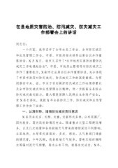 副县长在2023上半年安全生产和自然灾害防治会议上的部署讲话同志们:今天,我们召开县安委会和县减灾委 2023年第*次全体(扩大)会议。目的是对上半年全县安全生产与自然灾害防治工作进行再安排再部署再深化,确保下半年安全形势持续稳定。刚才,县安委办通报了前两季度安全生产与自然灾害防治工作整体情况和二季度综合督查情况;县规划自然资源局、县水利局、县气象局、巴山镇、东安镇、治平乡分别作了发言,几位同志讲得很好,希望大家认真学习领会,举一反三、狠抓落实。在奕锋县长讲话前,我将重点领域安全防范工作再作强调:一、全力以赴抓好洪涝灾害防御。汛期才刚刚开始,各级各部门切不可麻痹大意、安而忘危,要认真总结“*....