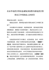 在全市地质灾害应急避险演练暨汛期地质灾害防治工作现场会上的发言