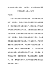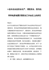 在2023年全县安全生产、消防安全、防汛抗旱和地质地震灾害防治工作会议上的讲话