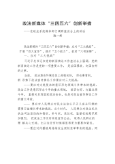 政法新媒体“三四五六”创新举措——在政法系统媒体部门调研座谈会上的讲话陈一新政法新媒体“三四五六”的创新举措:应对“三大挑战”,开展“四大宣传”,提升“五个能力”,抓好“六项保障”。一、应对“三大挑战”习近平总书记在党的新闻舆论工作座谈会上强调,党的新闻舆论工作是党的一项重要工作,是治国理政、定国安邦的大事。当前,政法舆论环境总体上趋稳向好,但也要看到,新形势下政法宣传舆论工作要应对三大挑战:——要应对尖锐复杂的意识形态领域斗争带来的挑战。政法工作是意识形态斗争的重点领域,能否打好、打赢这场斗争,直接关系到国家政治安全,也是对政法宣传舆论工作的重大考验。——要应对人民群众对民主法治公平正义安全...