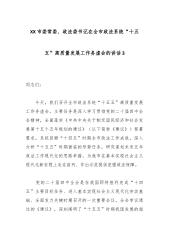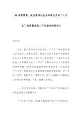 XX市委常委、市委政法委书记在全市政法系统全面从严治党暨队伍建设工作会议上的讲话同志们: 今天我们召开全市政法系统全面从严治党暨队伍建设工作会议,主要任务是深入学习贯彻党中央全面从严治党重大部署和习近平总书记关于全面从严治党、政法队伍建设的重要论述,全面总结2025年全市政法系统全面从严治党和队伍建设工作成效,分析当前面临的形势任务,研究部署2026年重点工作,进一步统一思想、凝聚共识、压实责任,以纵深推进全面从严治党的实际成效,锻造新时代过硬政法铁军,为我市服务保障“十五五”规划开好局、起好步提供坚强政法保障。 刚才,会议通报了2025年全市政法队伍纪律作风情况,市高院、市检察院、市公安局、市司法局和河北区委政法委的负责同志结合工作实际作了交流发言,谈得都很实在很具体,既有实践总结,也...