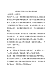 目录1.20xx年度政府开放日座谈会主持词.............................................................32.XX村(社区)团支部换届选举大会主持词...............................................173.xx学习教育第x次专题学习改革开放新时期历史会议主持词................214.XX学习教育动员部署大会主持词...............................................................235.D员、村民代表推荐会议主持词.....