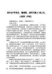 校长在“学党史、懂感恩、成时代新人”成人礼上致辞(学校)亲爱的家长们、老师们、可爱的孩子们:大家上午好!十八岁的到来,如花朵般绽放,郑重而又突然。今天我们在此隆重举行庄严的青春庆典,共同见证xx实验中学十八岁成人礼这一神圣的时刻。这是我们xx实验中学首届成人礼,适值中国共产党建党100周年,百年红船,岁月流金,也就赋予了这个活动必然的特殊意义。在此我谨代表xx教育集团,诚挚地祝贺我亲爱的同学们、青年朋友们,祝贺你们成为共和国最年轻的成人公民!同时也向那些为同学们的成长倾注了全部爱心与热情、汗水与智慧的家长和老师们表示崇高的敬意和真诚的感谢!中国是礼仪之邦,自古就有尊制重礼的文化传统。xxx多年...