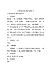 党支部“学党史、听红歌、颂党情”知识竞赛活动方案一首红歌就是一段历史,唱响红色歌曲是唤起人们对中国共产党一路走来的红色记忆。演唱革命歌曲,不仅能让我们共同追忆党的心路历程、峥嵘岁月,还能让我们更加凝心聚力,永远铭记党的恩情。为庆祝中国共产党成立100周年,扎实推进党史学习教育,进一步增强基层党员的党性观念,激发党员履职尽职、知责进取的内在动力,制丝动力车间党支部制定此活动方案。一、活动主题:学党史、听红歌、颂党情二、活动时间及地点活动时间:5月底生产结束地点:制丝车间党团活动室三、参加人员:支部全体党员、入党积极分子四、竞赛内容:竞赛分为二部分,三个党小组之间的听红歌说歌名竞赛和个人演唱。红歌...