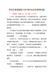十九届六中全会精神知识竞赛不忘初心跟党走同心共筑中国梦XXX开展党的十九届六中全会知识竞赛1、党的最高领导机关,是_______和_______答案:党的全国代表大会、它所产生的中央委员会2、“中央全会”的全称是_______答案:党的中央委员会全体会议XXX开展党的十九届六中全会知识竞赛3、中央委员会全体会议由_______召集,每年至少举行一次。答案:中央政治局4、中央政治局向_______报告工作,接受监督。答案:中央委员会全体会议5、十九届六中全会的全称是_______答案:中国共产党第十九届中央委员会第六次全体会议XXX开展党的十九届六中全会知识竞赛6、中共中央政治局2021年8月3...