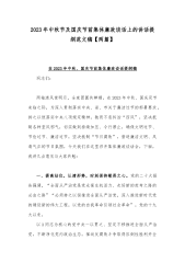 2023年在新任领导干部任前集体谈话暨廉政谈话会上的讲话提纲与中秋节、国庆节前集体廉政谈话会上的讲话稿【2篇文】