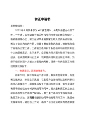 2022年预备党员转正申请书敬爱的党支部:去年经党组织批准,我成为了一名光荣的中共预备党员。此时我的预备期已满一年,根据党章第七条规定,我郑重地向党组织提出转正申请,申请转为中共共产党正式党员。一年来,在党组织的带领下,在支部党员的热心帮助下,经过一些列的政治理论知识学习和活动,提升了政治思想水平,增强了政治觉悟和政治素养。在党组织的培养教育下,我按照党员标准严格要求自己,加强政治理论学习,提升业务能力,热爱生活,积极向上。现在,我向党组织汇报一年来我在思想、工作、生活方面的情况。一、加强理论学习,提升政治能力一是学习党章党规,遵守党纪。党章是立党、治党、管党的总章程,是把握党的正确政治方向的...