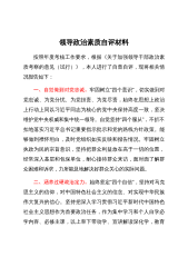 政治画像个人自评材料(3篇)政治画像个人自评材料1根据省委统一安排和考察组要求,现将本人政治建设对照检查情况报告如下:一、基本情况这些年,自己始终把政治建设摆在首位,注重培塑四个意识,坚定四个自信,对党绝对忠诚、时刻听党指挥,坚决维护以习近平同志为核心的党中央权威,牢牢把握了政治建设的正确方向。一是坚持理论武装锤炼政治素养。着眼坚定理想信念、强化核心意识,跟进学习党的十九大精神和新时代中国特色社会主义思想,读原著、学原文、悟原理,把握创新理论的科学内涵和精髓要义,不断加强主观世界改造,掌握思考问题、分析问题的科学方法和锐利思想武器,自觉做到考验面前不迷失方向。二是坚持站位全局提升政治视野。能够...