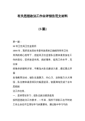 2024年政治生态政治生态分析研判情况报告自评报告七份与2025年【四个方面】围绕带头增强党性、严守纪律、砥砺作风方面等检查材料8篇2024年政治生态政治生态分析研判情况报告自评报告一、工作总结(一)聚焦恪守政治忠诚情况。认真学习宣贯习近平新时代中国特色社会主义思想和党的二十大精神,树牢“四个意识”,坚定“四个自信”,做到“两个维护”,持续教育引导党员干部在政治立场、政治方向、政治原则、政治道路上自觉同以习近平同志为核心的党中央保持高度一致,始终做到对党忠诚。严格落实《党委“第一议题”制度》,制定《2024年理论学习安排意见》,通过“第一议题”、党委理论学习中心组学习等抓实政治理论学习。认真组...