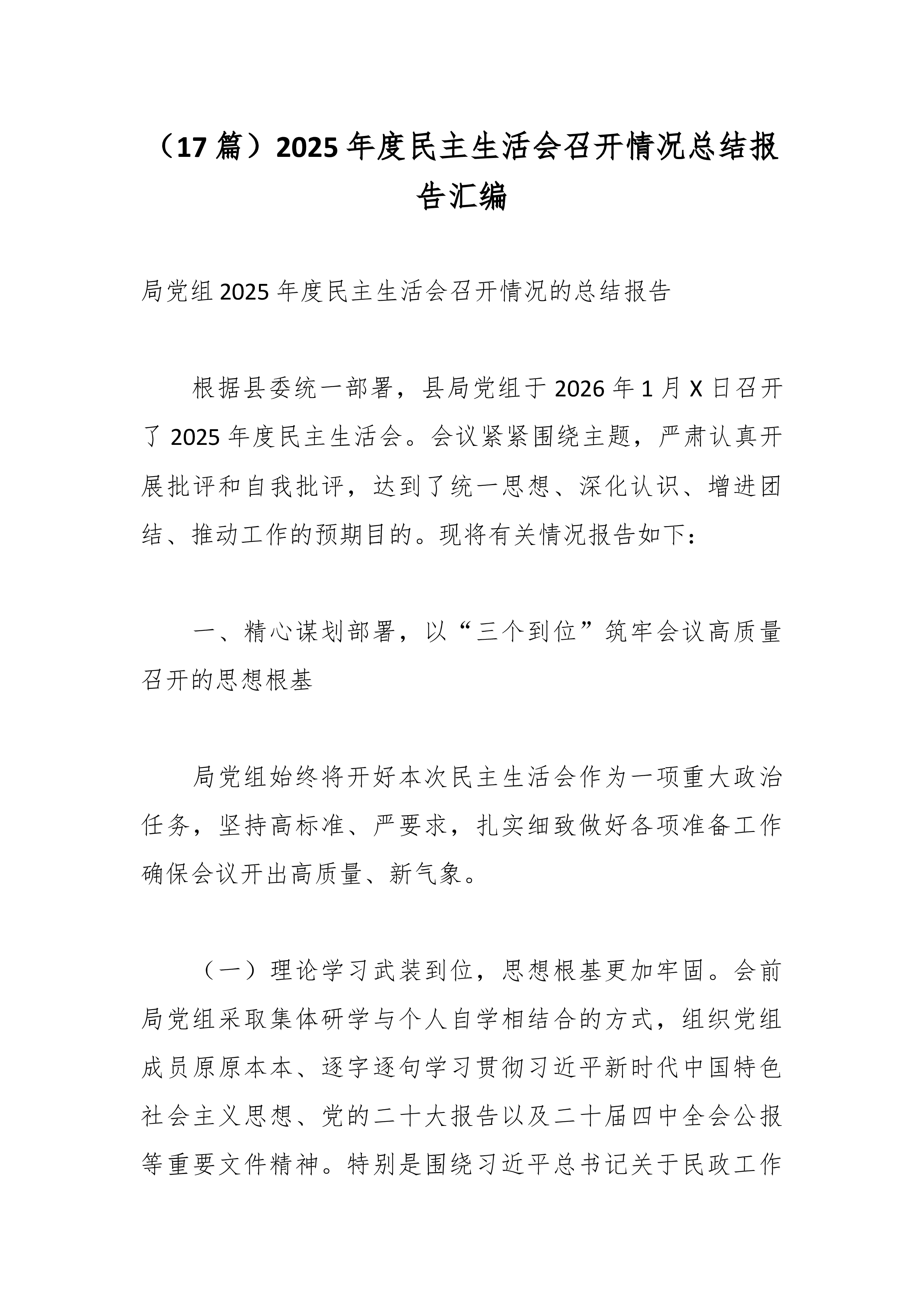 (31篇)2025年度民主生活会召开情况总结报告汇编