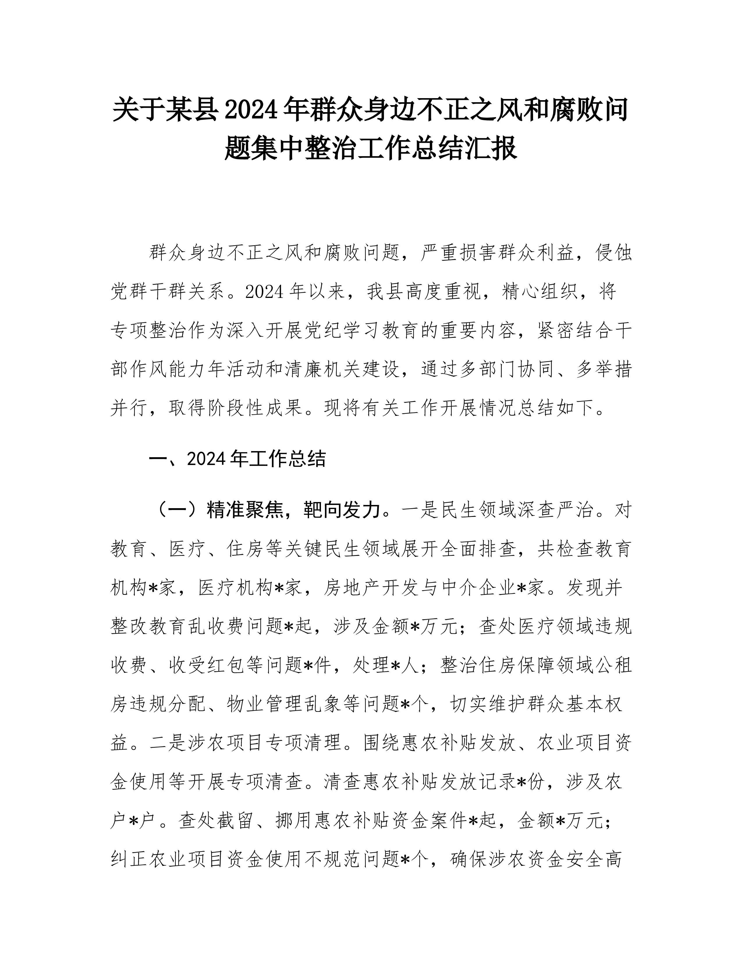 市卫健委2024年群众身边不正之风和腐败问题集中整治工作总结汇报