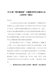在XX镇“算好廉政账”专题教育和作风建设大会上的讲话(精品)同志们: 今天,我们在这里召开全镇“算好廉政账”专题教育和作风建设大会,主要任务是深入学习贯彻习近平总书记关于全面从严治党、加强作风建设的重要论述,认真落实中央、省委、市委和区委的最新部署要求,结合我们刚刚观看的警示教育片《纪法红线不可逾越》,引导全镇广大党员干部认真算好廉政账,时刻绷紧纪律弦,以风清气正的政治生态和求真务实的工作作风,为XX镇高质量发展提供坚强保障。 刚才,警示教育片中的一个个案例,一幕幕场景,令人警醒,发人深思。片中人曾经也是意气风发的干部,也曾有理想、有抱负,但最终因为理想信念滑坡、纪律意识淡薄,一步步走向了腐败的深渊,不仅葬送了自己的前程,也给家庭带来了无尽的痛苦,更严重损害了党和政府的形象。这些“片中人...