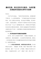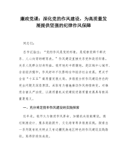 廉政党课:推进机关作风建设常态化长效化,以严实作风护航经济社会高质量发展同志们:党的作风就是党的形象,关系人心向背,决定党和国家事业成败。机关作风是党风政风的重要体现,直接关系机关工作效率、服务质量和群众满意度,关系党和政府在人民群众中的形象。推进机关作风建设常态化长效化,是推动新时代机关党建高质量发展的重要任务,对以高质量党建促进高质量发展、确保党和国家中心任务顺利完成,具有重大而深远的意义。一、深刻领会加强机关作风建设的必要性(一)加强机关作风建设,是践行党的根本宗旨的必然要求。习近平总书记深刻指出:“加强和改进党的作风建设,核心问题是保持党同人民群众的血肉联系。”我们党的根基在人民、血脉在人民、力量在人民,党的根本宗旨和初心使命决定了密切联系群众是党的最大政治优势,脱离群众是党执政后的...