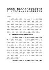 廉政党课:推进机关作风建设常态化长效化,以严实作风护航经济社会高质量发展