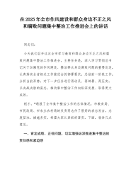 在2025年全市作风建设和群众身边不正之风和腐败问题集中整治工作推进会上的讲话