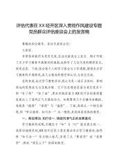 评估代表在XX经开区深入贯彻作风建设专题党员群众评估座谈会上的发言稿