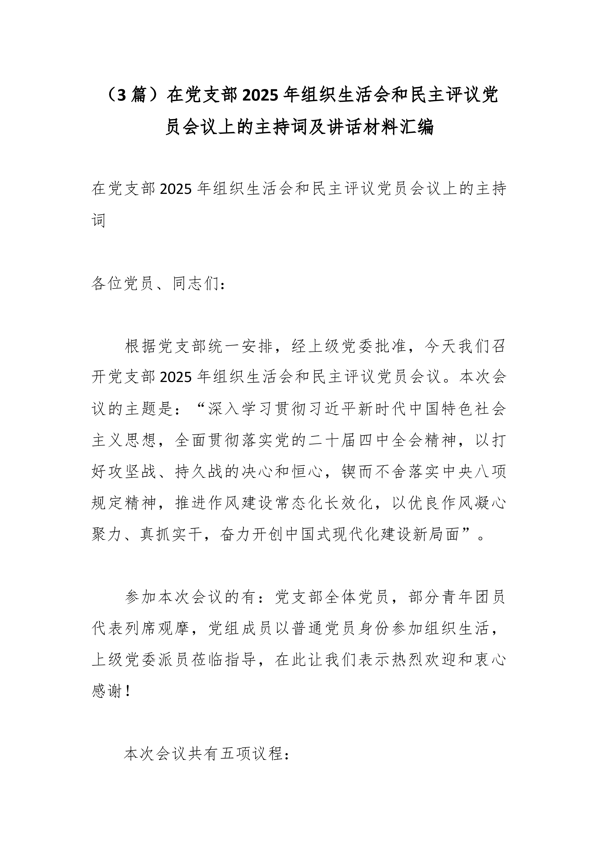 (3篇)在党支部2025年组织生活会和民主评议党员会议上的主持词及讲话材料汇编