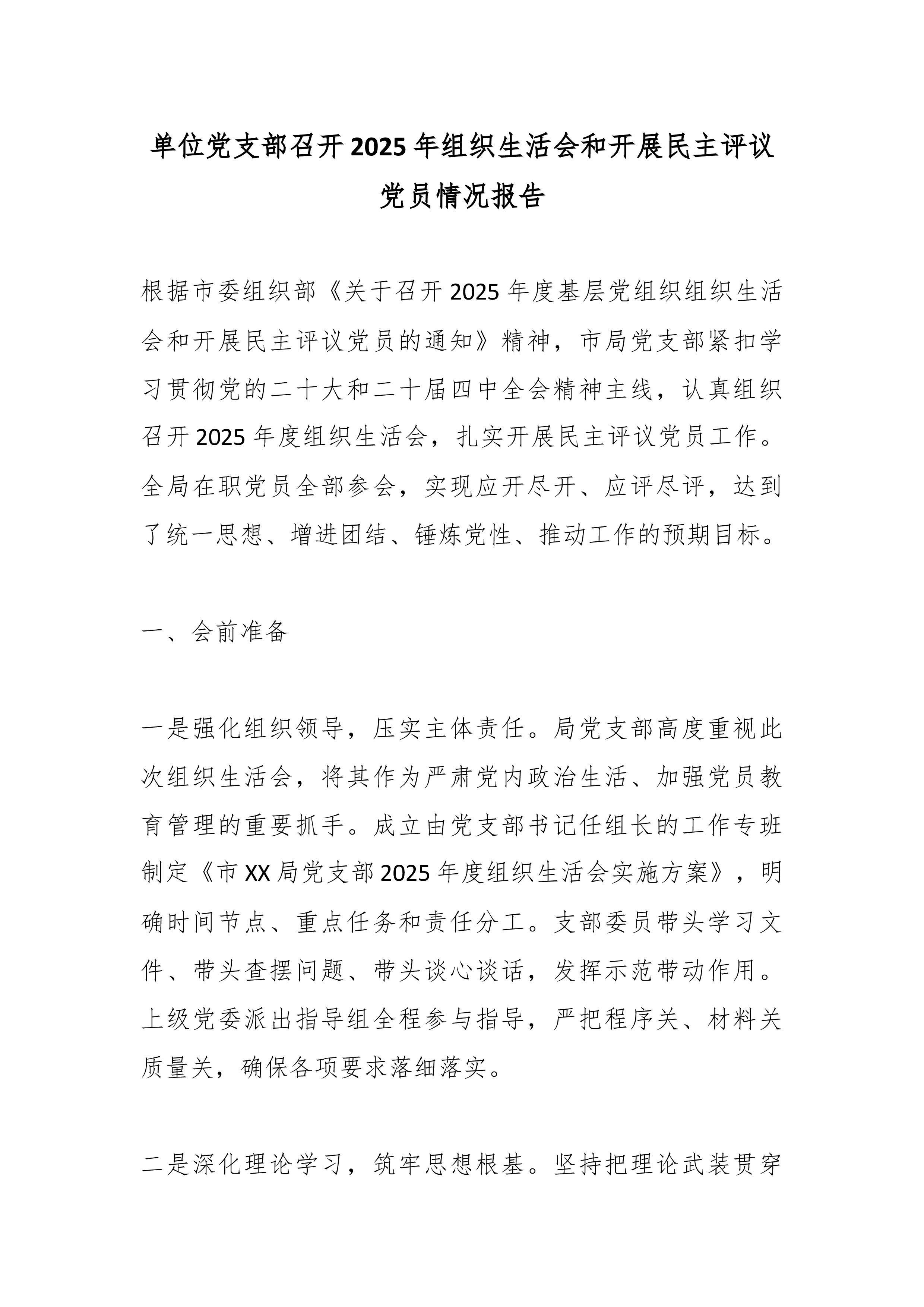 党支部2025年度组织生活会和开展民主评议党员工作实施方案(公司)