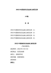 2021组织生活会谈心谈话记录模板参考(4篇)组织生活会谈心谈话记录模板参考1一对一谈心交流记录谈话时间:谈话时间:谈话地点:谈话人员:李XX张XX谈话内容:根据不忘初心牢记使命方案要求,开展班子成员一对一谈心交流,要点如下:李XX同志四风方面需改进的建议:意见1:问题:缺失了个人信仰,扭曲了价值观念。存在着政治信仰不坚定、理想信念模糊、世界观和价值观定位扭曲、社会责任感缺失,为人民服务宗旨意识薄弱,失去共产主义信仰。频繁出现“门难进、脸难看、事难办”现象。建议:所以,要加强宗旨教育,达到入脑入心。思想是行动的先导,解决“四风”问题要从思想观念抓起。党员、干部要常照思想之镜,及时清除思想上的灰...