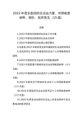 2022年度全套组织生活会方案、对照检查材料、报告、批评意见(15篇)