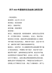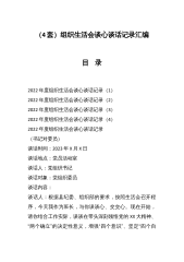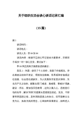 组织生活会谈心谈话(5篇)篇一篇:组织生活会谈心谈话谈话时间:谈话地点:谈话人员:李XX张XX谈话内容:根据不忘初心牢记使命方案要求,开展班子成员一对一谈心交流,要点如下:李XX同志四风方面需改进的建议:意见1:问题:缺失了个人信仰,扭曲了价值观念。存在着政治信仰不坚定、理想信念模糊、世界观和价值观定位扭曲、社会责任感缺失,为人民服务宗旨意识薄弱,失去共产主义信仰。频繁出现“门难进、脸难看、事难办”现象。建议:所以,要加强宗旨教育,达到入脑入心。思想是行动的先导,解决“四风”问题要从思想观念抓起。党员、干部要常照思想之镜,及时清除思想上的灰尘。应牢固树立立党为公、执政为民的理念,心里始终装着群...