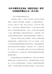 2025年民主生活会、组织生活会批评与自我批评意见汇总(四组共48条)