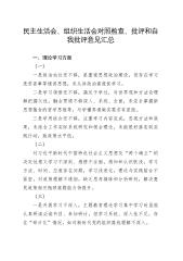 组织生活会、民主生活会自我批评和相互批评意见建议(50条,个人问题清单)一、政治思想方面(5条)1.政治理论学习深度不够,对习近平新时代中国特色社会主义思想的理解停留在文字表面,缺乏系统性深入钻研,未能充分结合实际工作思考运用,在贯彻落实党的方针政策时存在一定的滞后性。2.政治敏锐性有待提高,对一些潜在的政治风险和意识形态问题洞察力不足,在面对复杂多变的社会舆论环境时,缺乏主动引导和正面回应的意识与能力。3.对党中央决策部署的执行存在打折扣现象,有时会因地方实际情况或个人主观判断,选择性执行部分内容,而未从全局高度完整、准确地落实各项任务要求。4.在党内政治生活中,批评与自我批评不够深刻,存在...